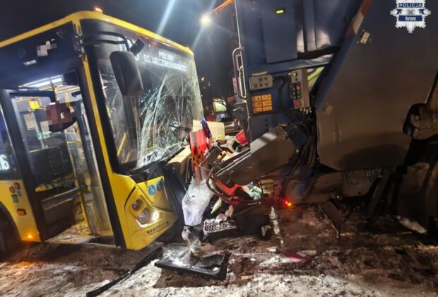 W Bytomiu autobus staranował Peugeota i śmieciarkę – cztery osoby ranne!