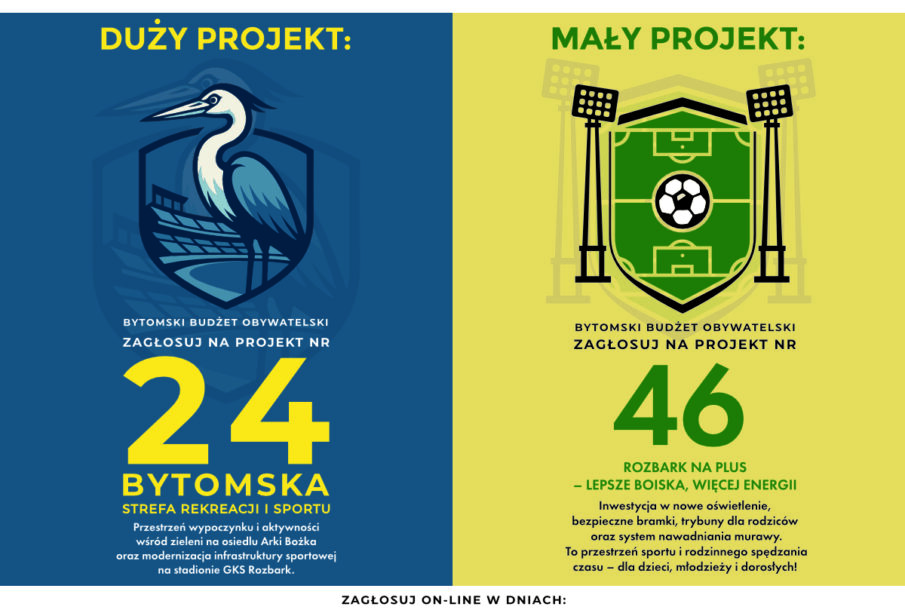Głosowanie w Budżecie Obywatelskim trwa do 10 października, a każdy mieszkaniec Bytomia może oddać dwa głosy – jeden na projekt duży i jeden na mały. To właśnie teraz decyduje się przyszłość tych inicjatyw, dlatego tak ważne jest, aby zmobilizować się i poprzeć rozwiązania, które naprawdę mogą odmienić nasze miasto. Projekty nr 24 i 46 to inwestycje w zdrowie, bezpieczeństwo i wspólnotę. To wybór, który przyniesie korzyści nie tylko dziś, ale także przyszłym pokoleniom bytomian.