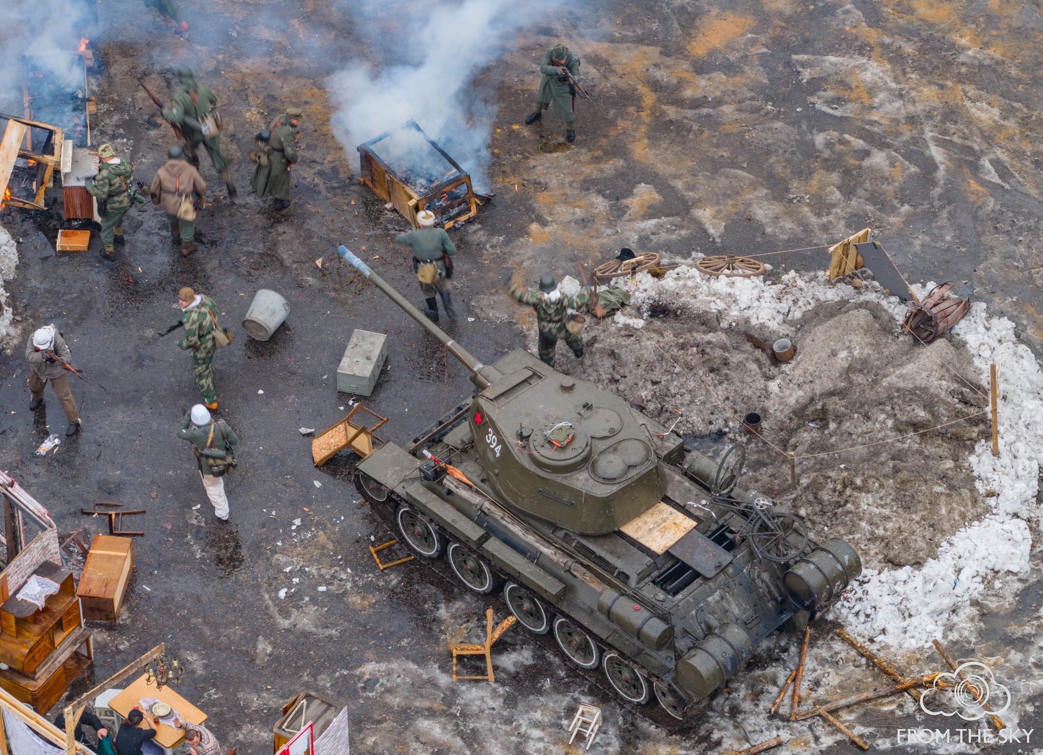 Duże wrażenie na widzach zrobiła również oprawa techniczna wydarzenia. Podczas rekonstrukcji zaprezentowano historyczne pojazdy wojskowe z czasów II wojny światowej, w tym sowiecki czołg T-34, lekki samochód pancerny BA-64 oraz replikę niemieckiego niszczyciela czołgów Marder. Uzupełnieniem widowiska były pokazy pirotechniczne oraz prezentacja działka przeciwlotniczego Flak-38 kaliber 20 mm z 1943 roku, jednego z nielicznych zachowanych egzemplarzy w Polsce.