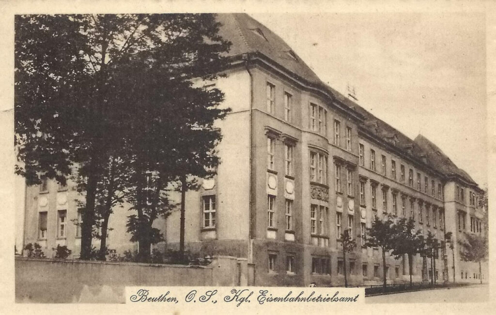 Gmach wzniesiono w 1914 roku, w okresie gdy ówczesny Beuthen był jednym z kluczowych ośrodków przemysłowych Górnego Śląska. Projekt przygotowali architekci Freisl & Gronard, wpisując obiekt w charakterystyczny dla początku XX wieku nurt monumentalnej architektury urzędowej. Lokalizacja nie była przypadkowa – budynek stanął tuż przy dworcu kolejowym, podkreślając rangę kolei jako strategicznego sektora gospodarki. To tutaj zapadały decyzje dotyczące organizacji transportu, planowania ruchu pociągów i zarządzania infrastrukturą, która obsługiwała przemysłowe serce regionu.